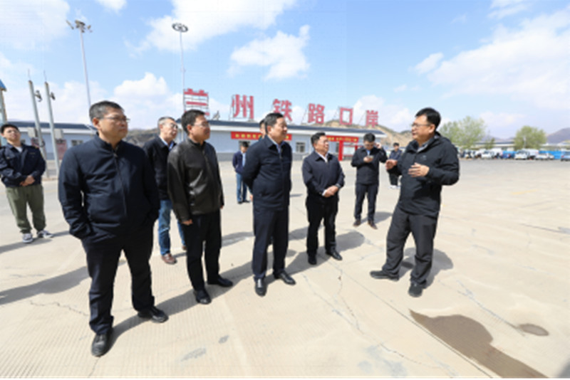 座談會(huì)結(jié)束后蔡中堂一行赴蘭州陸港現(xiàn)場調(diào)研,實(shí)地考察了蘭州鐵路口岸東川作業(yè)區(qū)、蘭州陸港B型保稅區(qū)。