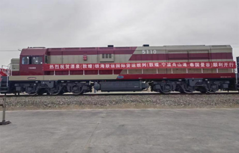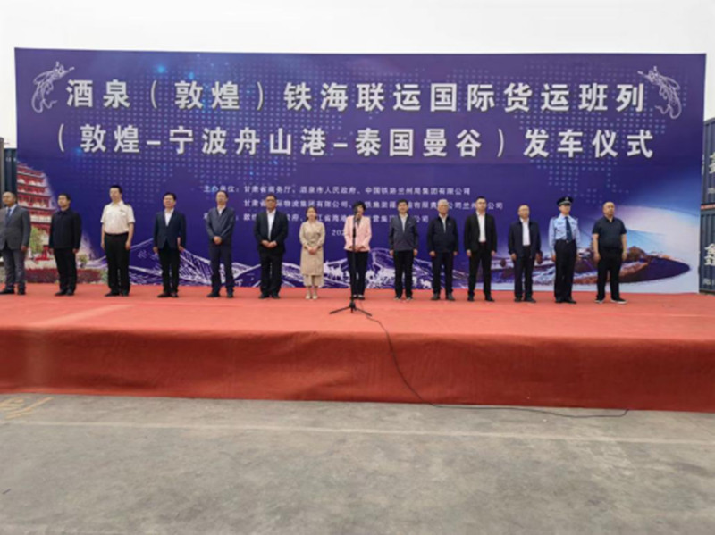 5月26日上午,酒泉(敦煌)鐵海聯(lián)運(yùn)國際貨運(yùn)班列(敦煌-寧波舟山港-泰國曼谷)發(fā)車儀式在敦煌鐵路西貨站綜合貨場舉行,甘肅物流集團(tuán)多式聯(lián)運(yùn)公司積極組織貨源,多方協(xié)調(diào)、整體聯(lián)動(dòng),助推該班列穩(wěn)定開行。載著40個(gè)集裝箱的1000噸石棉班列從敦煌鐵路西貨站啟程,經(jīng)寧波港海運(yùn)至泰國曼谷,預(yù)計(jì)全程用時(shí)20,該班列的成功開行是多式聯(lián)運(yùn)公司積極響應(yīng)“一帶一路”倡議,深化與沿線國家經(jīng)貿(mào)合作,促進(jìn)建立通道物流走廊,推動(dòng)甘肅省外向型經(jīng)濟(jì)高質(zhì)量發(fā)展的具體舉措。